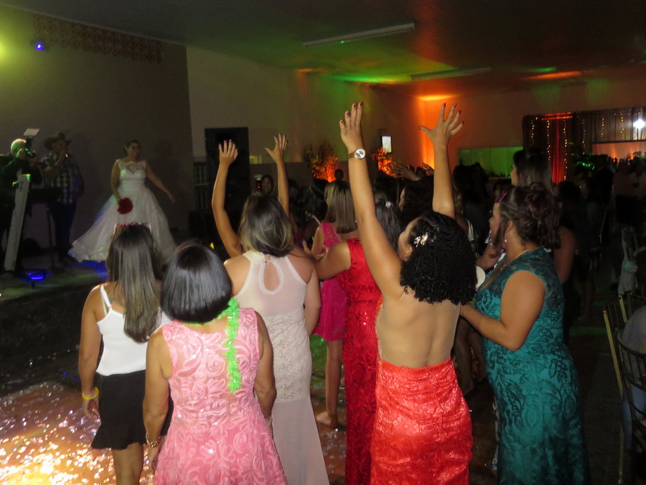 The bride throws the bouquet to the single ladies...