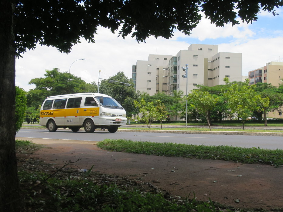 Typical BrasÃlia (nice roads, flats, and a school bus)