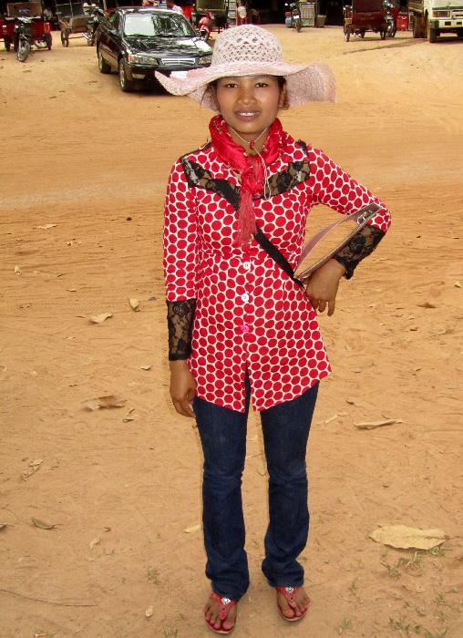 Khmer girl promoting a restaurant