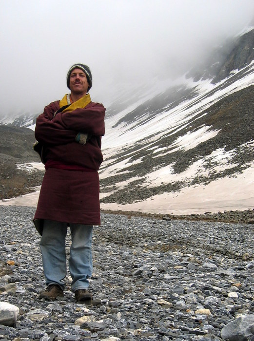Wearing a warm Tibetan jacket