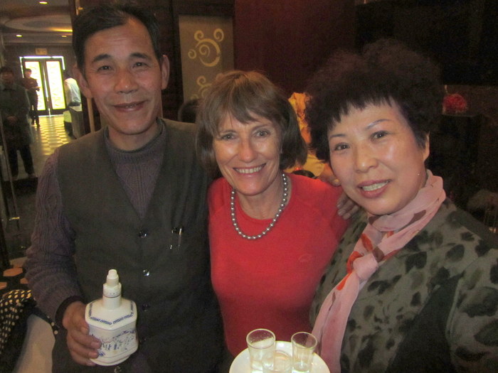 Jo sipping Bai-Jo with new friends
