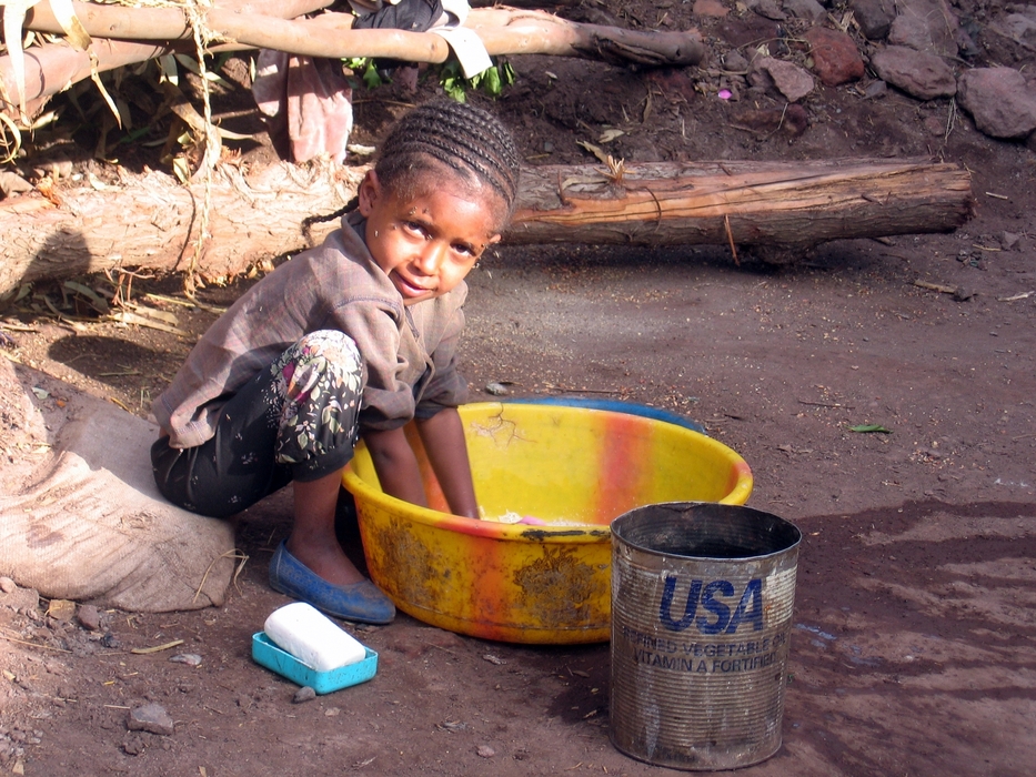 US-food-aid tin's new role as a water receptacle