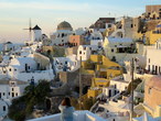 Kalimera! We island-hopped our way from Turkey to Italy via Greece... Regarding the scenery, we were most keen to see Santorini, the mega-volcano that exploded 3600 years ago, now a giant caldera at sea level and a truly magnificent site. The Santorini explosion and tsunami destroyed the Minoan civilization (and probably the city of Atlantis). Now Santorini is famous for the classic white-and-blue villages clinging to the cliffs above the caldera. We only stayed one night. Tourists!