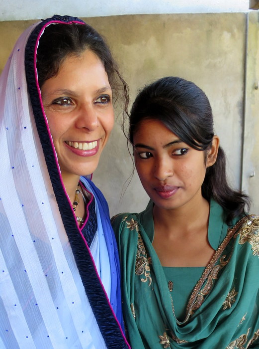 Lili wearing a sari with Assamese woman