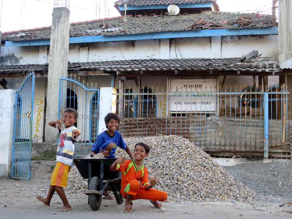 Children playing near an old mosque