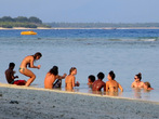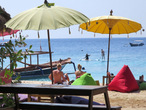 Many Indonesians live on the three Gilis but this place does not seem like Indonesia. Despite the mosques' electric speakers blasting out invitations to pray five times a day, the tourists here get what they want, tropical paradise with beach bungalows, quality restaurants, late-night clubs, scuba diving, friendly locals, and lots of comfy places to chill out, all on the cheap (compared to Europe) and close to Bali's international airport.