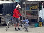 On the Indian Ocean coast near to Somalia; we wanted to visit Lamu (an ancient trading center and world heritage site) but Al-Shabab terrorists were active along the road, so we didn't go. All the "safari tourists" fly to Lamu but that's not how we roll. We did however visit many wonderful places, notably Loitoktok (with a magnificent view of Mt Kilimanjaro), Wundyani (a hidden gem in the Taita Hills), and Kericho (where tea is grown for export). At Lake Naivasha we cruised through giraffe country by bicycle :-) We also took the new Chinese-built train from Mombasa to Nairobi, a modern marvel.