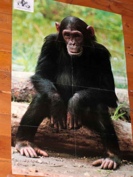 The best close-up of a chimp I could get (a poster in the lodge)
